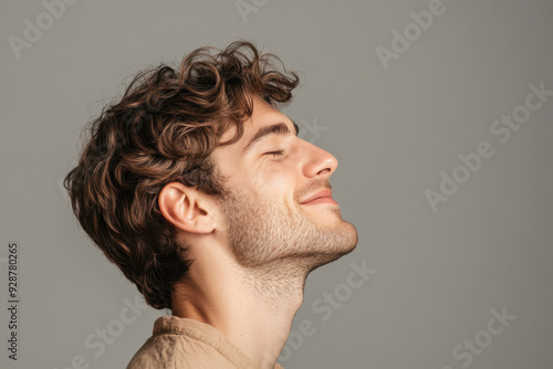 © MagnusCort, Obraz premium A close up of a man's face with his eyes closed