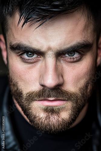 © Janis, Obraz premium A close up of a man with a beard and blue eyes