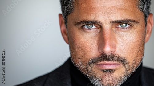 © Janis, Obraz premium A close up of a man with a beard and blue eyes