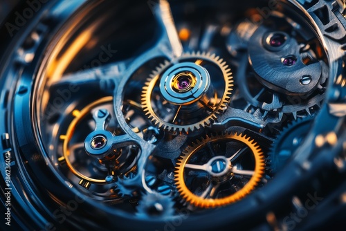 Fototapeta premium A close-up of a mechanical watchs intricate gears in motion - the precision...