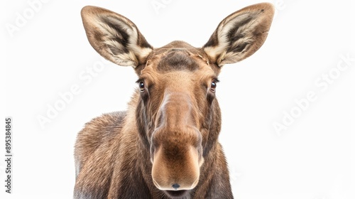 © Whitefeather, Fototapeta premium A close up of a moose's face with its ears pointed forward