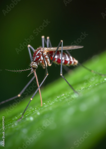 Fototapeta premium A close up of a mosquito on a leaf. Generative AI.