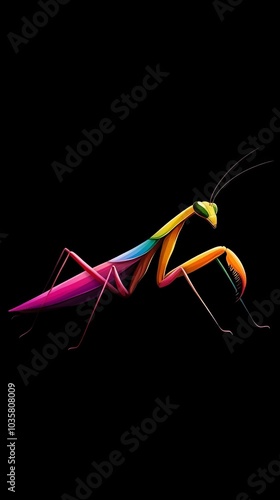 © Ilona, Fototapeta premium A close-up of a multicolored praying mantis against a black background