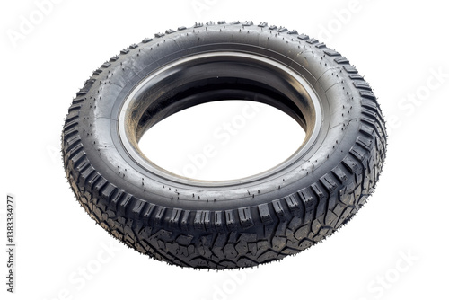 © shakeela, Obraz premium A close-up of a new rubber tire showcasing its detailed tread pattern and sleek design