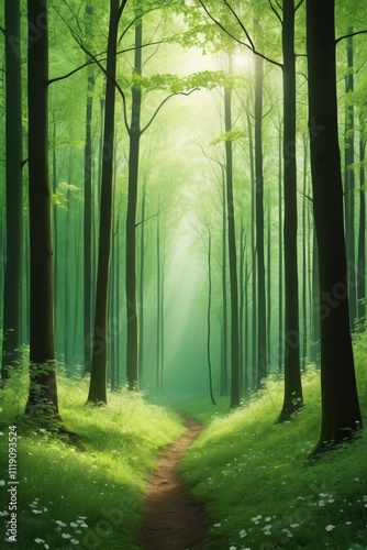 © haiqiang, Naklejka premium a close up of a path in a forest with trees