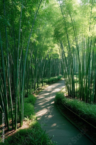 © haiqiang, Obraz premium a close up of a pathway through a lush green forest