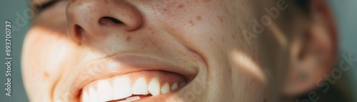 Obraz premium A close-up of a person's beaming smile, with bright eyes and a look of pure...