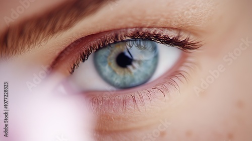 Obraz premium A close up of a person's blue eye
