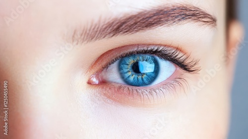 © arhendrix, Obraz premium A close-up of a person's eyes, showing sensitivity to light