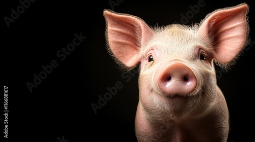 © Albert, Fototapeta premium A close up of a pig's face on a black background