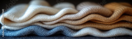Fototapeta premium A close up of a pile of knits on a table woven cashmere smooth satin