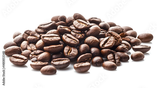 Naklejka premium A close-up of a pile of roasted coffee beans showcasing their rich color and texture.