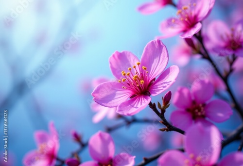 © Oleg, Fototapeta premium A close up of a pink flower on a tree branch