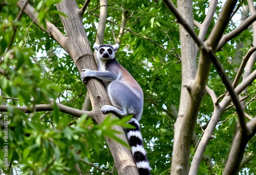 Fototapeta premium A close up of a Ring Tailed Lemur in a tree