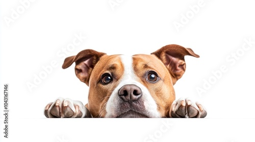 © BerkahStock, Obraz premium A close-up of a sad-looking dog resting its head on a surface, evoking empathy.