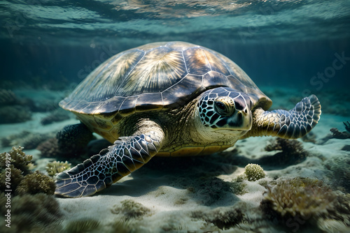 Fototapeta premium A close up of a sea turtle under the sea