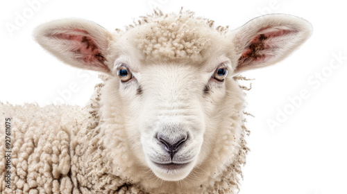 © munawaroh, Fototapeta premium A close-up of a sheep's face with fluffy wool and expressive eyes. isolated on white background isolated on white background. transparent background