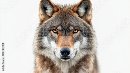 © eric.rodriguez, Fototapeta premium a close up of a siberian wolf looking a camera on isolated white background