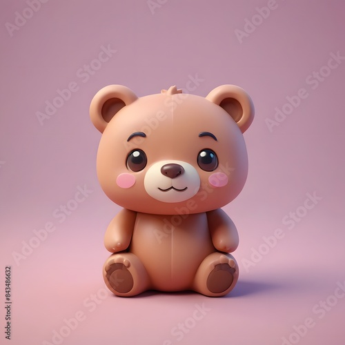 © klakonstudio, Obraz premium a close up of a small toy bear sitting on a pink surface