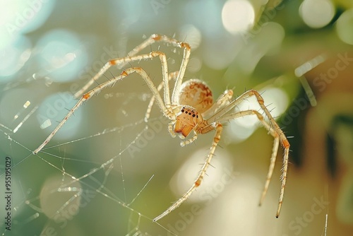 © talkative.studio, Fototapeta premium A Close-Up of a Spider with Spiky Legs in Its Web
