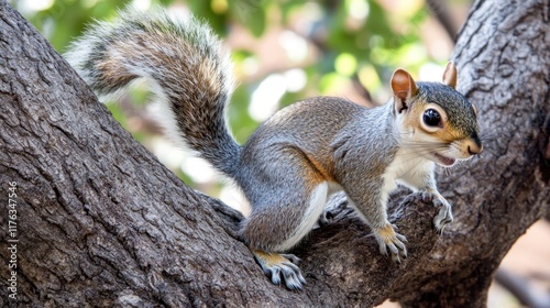 Fototapeta premium A close-up of a squirrel perched on a tree branch, showcasing its features...
