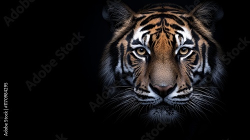 © Albert, Fototapeta premium A close up of a tiger's face on a black background