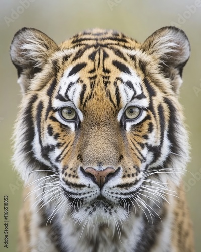 © DZIKRA , Fototapeta premium A close-up of a tiger's face showcasing its striking features and intense gaze.