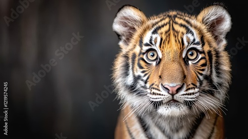 © Albert, Naklejka premium A close up of a tiger's face with a black background