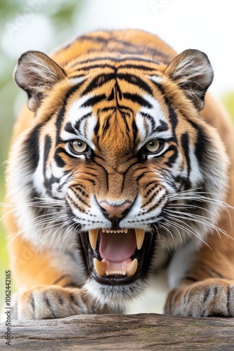 © Albert, Fototapeta premium A close up of a tiger yawning with its mouth open