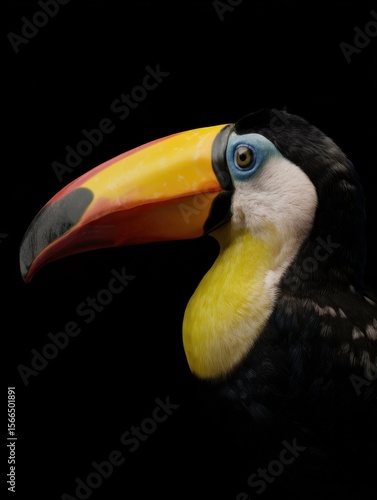 © Mikus, Fototapeta premium A close up of a toucan's head with a black background
