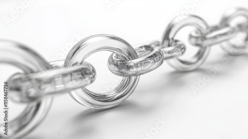 Obraz premium A close-up of a transparent chain link, emphasizing its smooth surface and interconnected design, set against a minimalist white background.