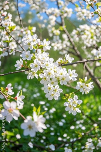 © haiqiang, Obraz premium a close up of a tree with white flowers in a field