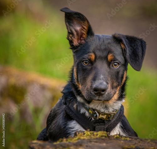 Fototapeta premium A close up of a Tri-colour Border Collie puppy