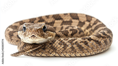 © Yuliia Litvinova, Obraz premium A close-up of a venomous rattlesnake, super detailed scales, eyes reflect the danger of a cold-blooded individual.