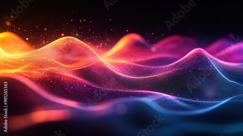 © Pixamint, Obraz premium A close up of a wave of colored light on a black background