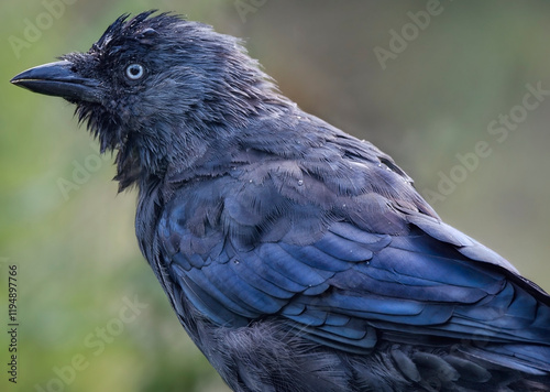 Naklejka premium A close up of a Western Jackdaw (Eurasian, European Jackdaw)
