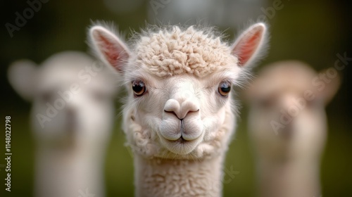 © Janis, Obraz premium A close up of a white alpaca looking at the camera