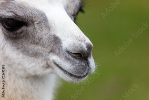 © schankz, Obraz premium A close up of a white and gray llama's face