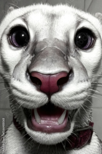 © Mikus, Fototapeta premium A close up of a white cat with purple eyes and a red collar