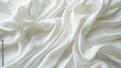 © buraratn, Obraz premium A close-up of a white cloth background with soft, rolling waves, forming a tranquil abstract design.