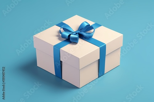 Obraz premium a close up of a white gift box with a blue ribbon