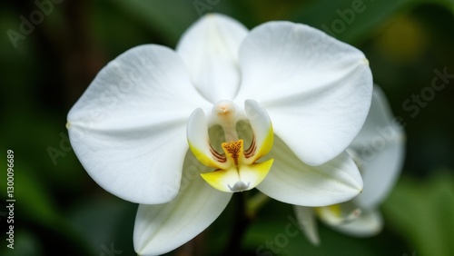 Fototapeta premium A close-up of a white orchid flower with yellow and brown details in the center.