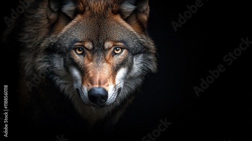 © Ilona, Obraz premium A close up of a wolf's face in the dark