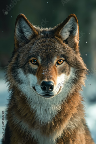 © Nikname, Obraz premium A close up of a wolf's face in the snow