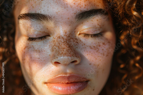 © mizmizstk, Fototapeta premium a close up of a woman with freckles on her face