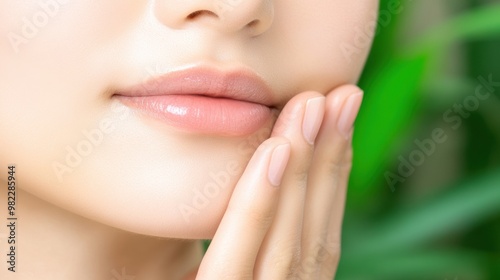 © starush, Obraz premium A close up of a woman with her hands on the side of her face, AI
