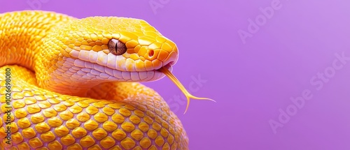 © Albert, Fototapeta premium A close-up of a yellow snake with its head positioned at its tail end