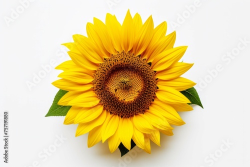 Fototapeta premium A close-up of a yellow sunflower against a white background, with its petals...