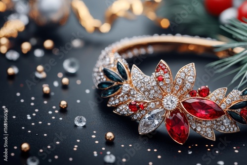 Fototapeta premium A close-up of an intricate silver bracelet adorned with tiny gemstones,...