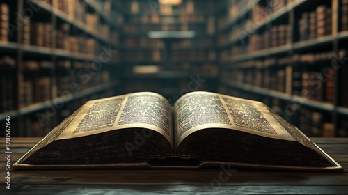 © NCSF, Obraz premium A close up of an open book with the background blur library